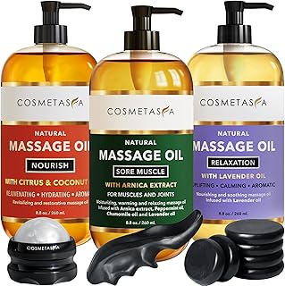 Price ~ $144.82 Indulge in the ultimate relaxation experience with Cosmetasa’s premium massage care kit. This all-inclusive set includes Relaxation, Sore Muscle, and Nourishing Massage Oil, along with top-of-the-line massage tools to elevate your massage routine. Crafted with a therapeutic blend of quality oils, each massage oil offers a unique set of benefits, from relieving…
